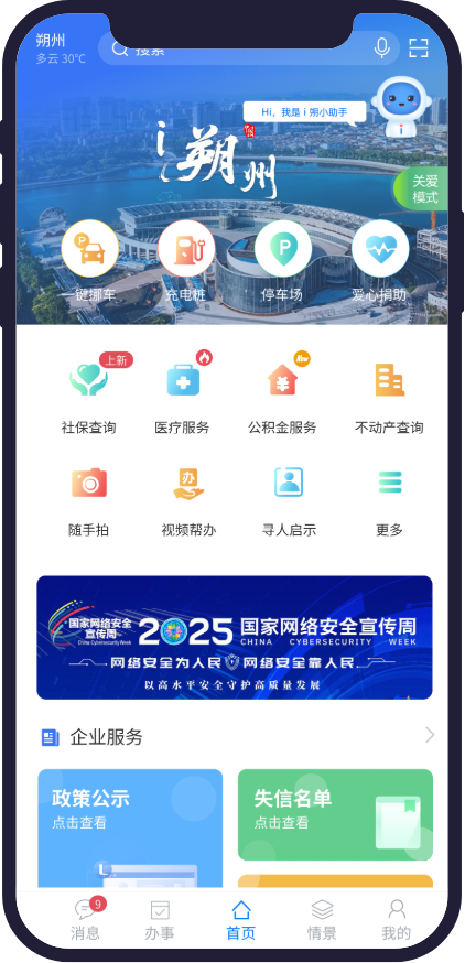 “i朔州”是朔州市人民政府主导建设、面向未来的智慧城市生态平台,集公共服务、生活便利、政民互动、企业支持、政府协同于一体,致力于打造全市统一、安全高效、便捷智能的城市级综合服务入口。无论您是本地居民、来朔游客、企业法人,还是政府工作人员,只需一个账号,即可畅享覆盖政务办事、交通出行、医疗健康、教育文化、社区服务、旅游休闲、营商环境、城市治理等领域的百余项高频服务,真正实现“一端集成、全城通办、智慧随行”。平台深度融合大数据、云计算与与移动互联技术,打通部门壁垒,推动政务协同办公智能化升级,提升城市治理现代化水平。同时,以用户为中心,构建“掌上办、马上办、一次办”的便民服务体系,让数据多跑路,群众少跑腿。
